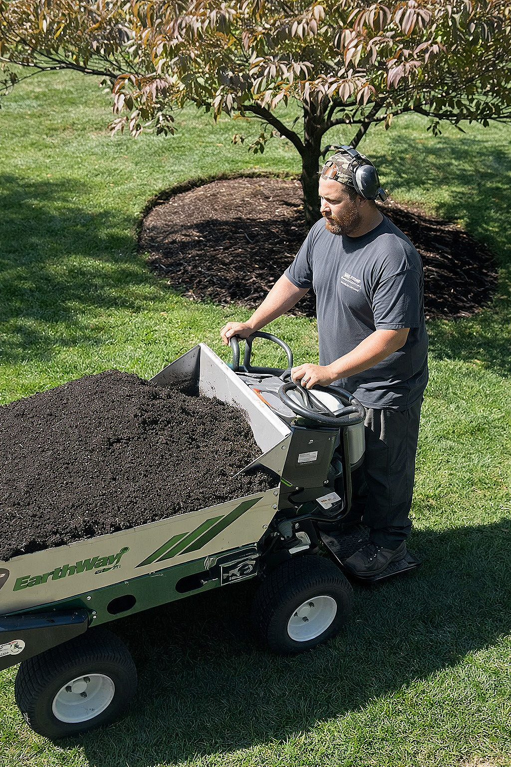 Anthony topdressing with compost to enhance soil structure and promote a healthier lawn.